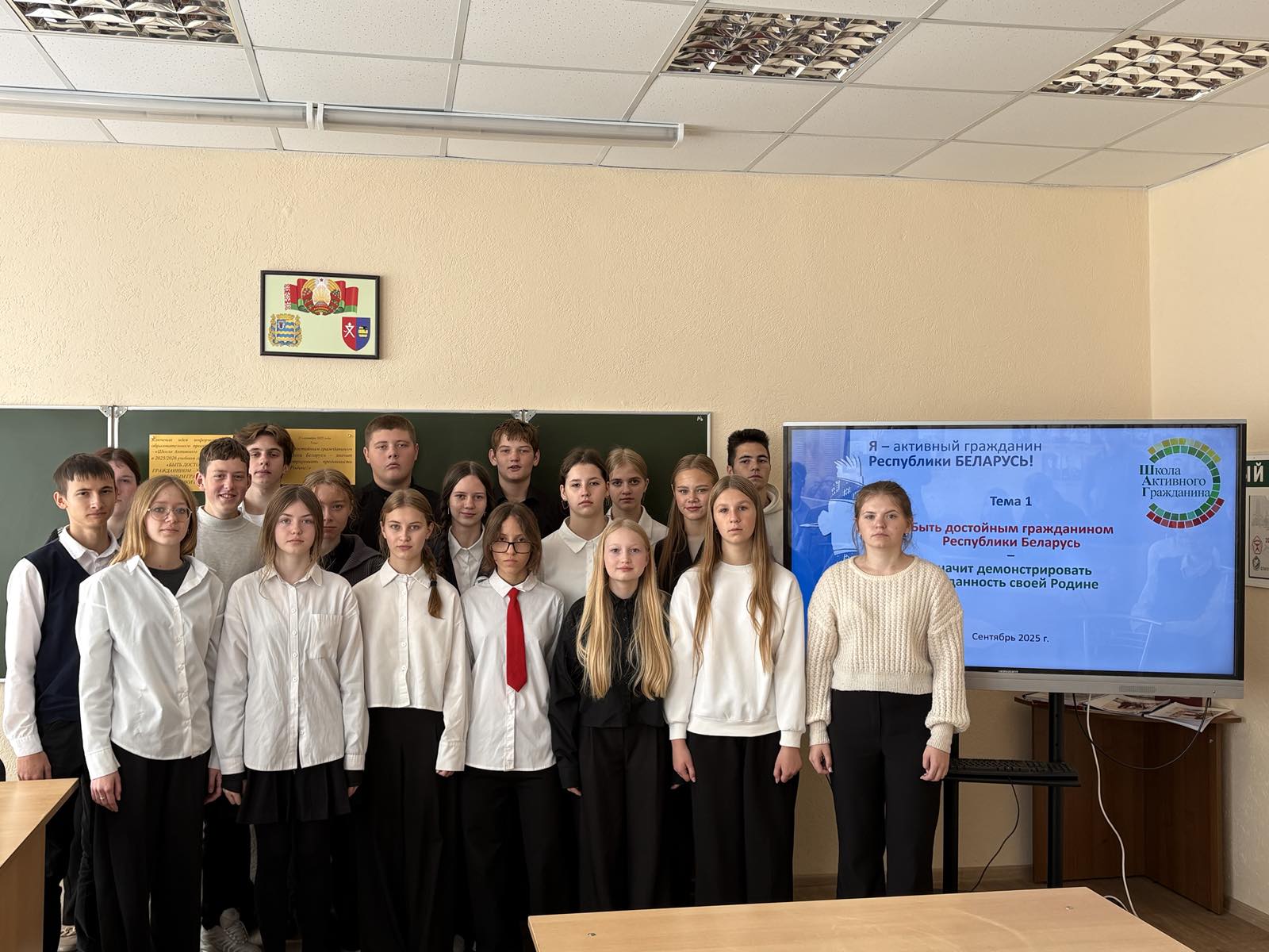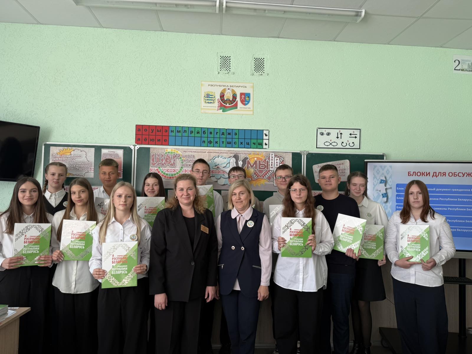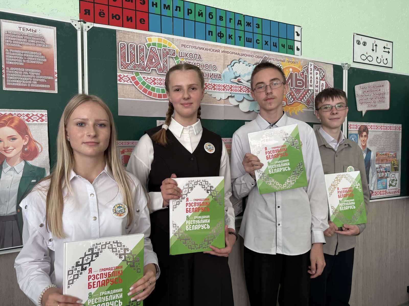 25 сентября 2026 года во всех учреждениях общего среднего образования Смолевичского района проведены занятия в рамках информационно-образовательного проекта ШАГ – «Школа Активного Гражданина» по теме «Быть достойным гражданином Республики Беларусь – быть преданным своей Родине». С учащимися была проведена беседа о паспорте гражданина Республики Беларусь, символах страны. В ходе беседы ребята обсудили личные качества гражданина Республики Беларусь, значимость гражданской позиции каждого человека для развития страны.