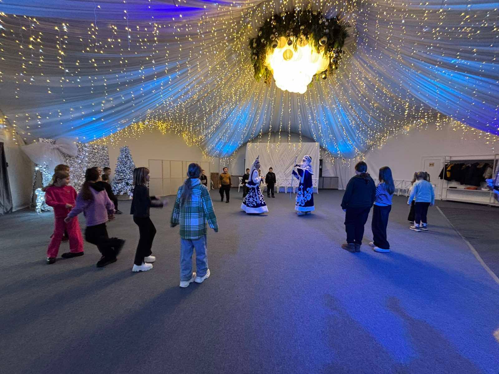 Угощение пиццей, чаем. Волшебный сундук с подарками, встреча с Дедом Морозом и Снегурочкой, а также зажигательная дискотека.