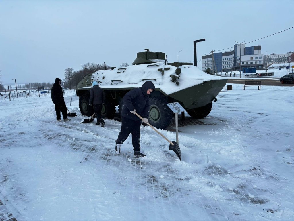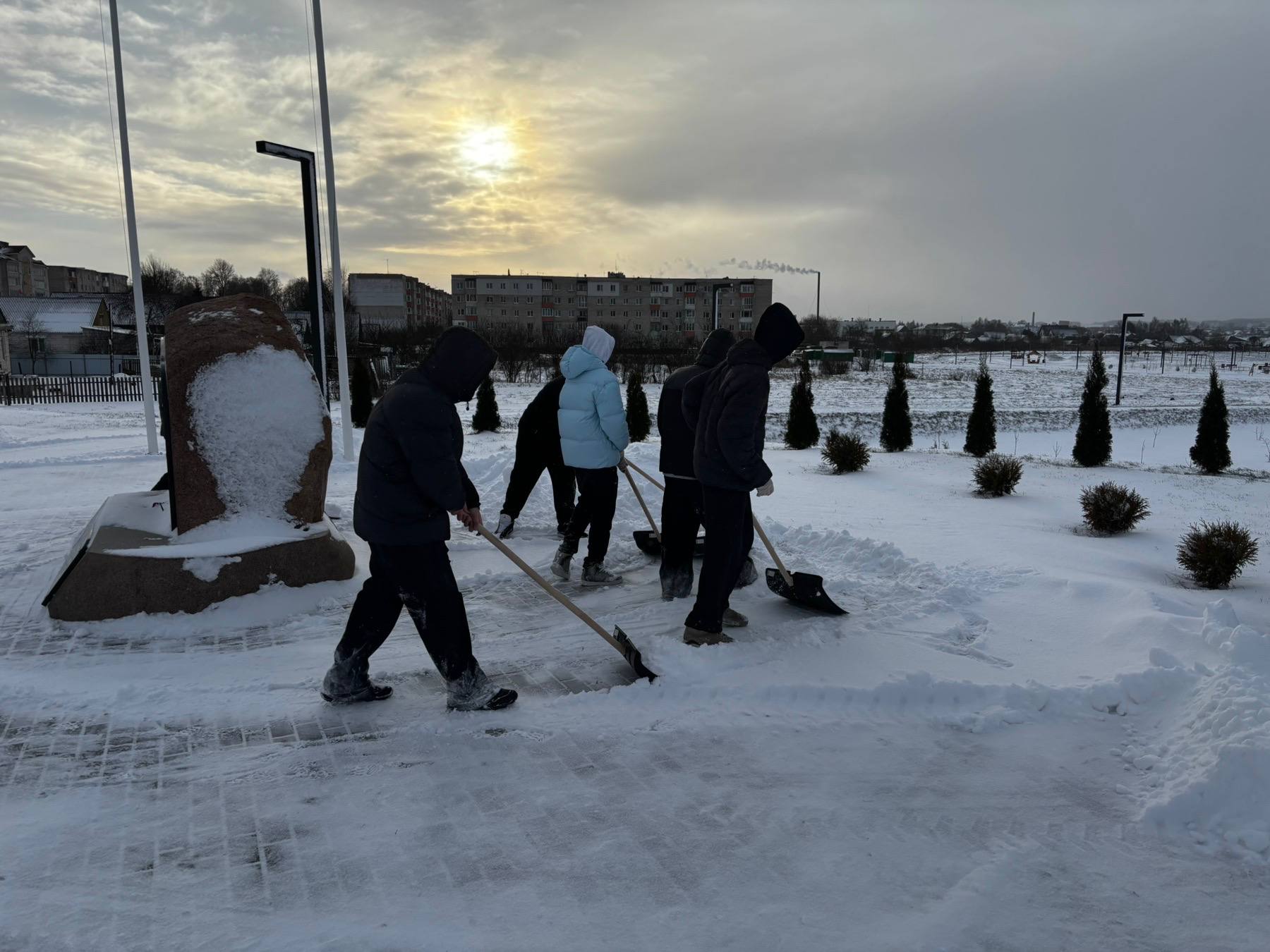 Ребята 5 отряда приняли участие в акции «Память благодарных сердец», очистили территорию от снега у памятного знака всем защитникам Отечества.