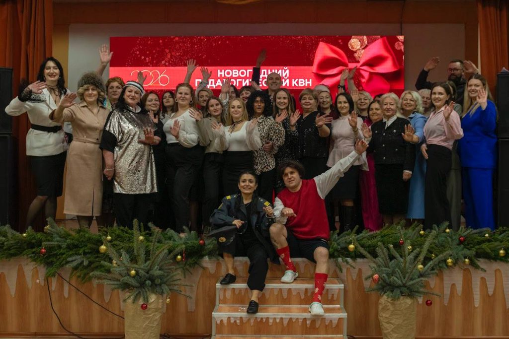 В канун новогодних праздников руководители школ района, заведующие детских садов и молодые педагоги провели педагогический КВН. На сцене выступили три